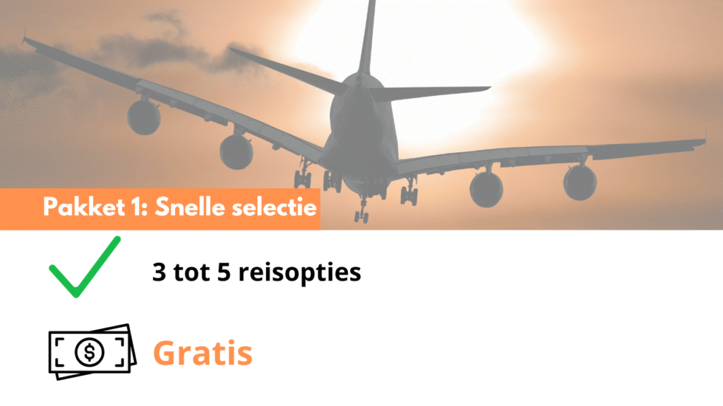 Geen zin om een vakantie te zoeken? Laat het zoekwerk aan ons over! 🗺️ Of je nu snel een paar reisideeën wilt of een compleet plan op maat, wij regelen het voor je. Kies een pakket en begin met dromen!